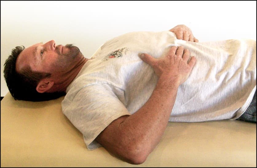 This self-massage technique helps releases tension in the muscles/fascia that can become painful as a result of rounded shoulders.